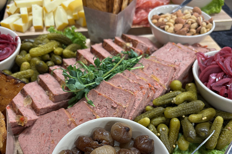 Frankrig: Den franske del byder på en rustik charme med pâté de campagne og et udvalg af oste, der indbyder til langsom nydelse. Deres terrine er en sand fest for smagsløgene, fyldt med aromatiske urter og krydderier.